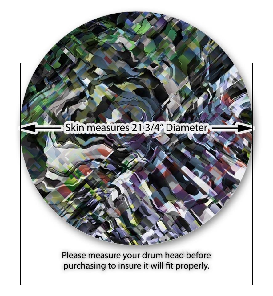 This design also available in other sizes. WraptorSkinz® skin wraps compatible with most kick drum heads. Printed using superb photo quality designs and vibrant colors printed with special fade resistant inks that last even in direct sun for years. WraptorSkinz are a composite three layer commercial grade materials vinyl. The bottom layer is a air release, grey block out removable adhesive that hides existing graphics on the drum head and is easily applied without air bubbles. The middle layer is a flexible vinyl printed with UV protected, fade resistant inks that deliver superb photo quality designs in vibrant colors. Finally, we bond a professional grade laminate over the entire skin adding a glossy protective finish.