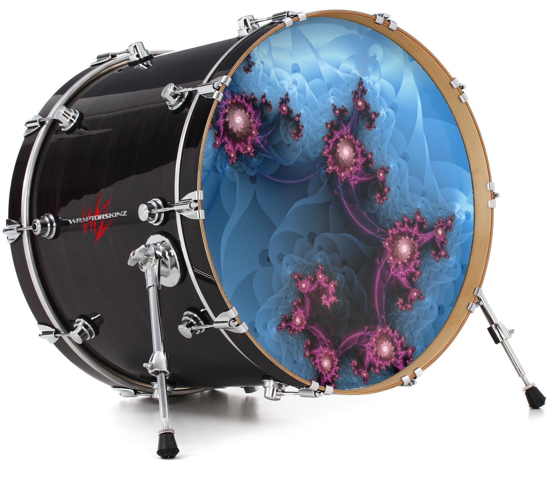 This design also available in other sizes. WraptorSkinz® skin wraps compatible with most kick drum heads. Printed using superb photo quality designs and vibrant colors printed with special fade resistant inks that last even in direct sun for years. WraptorSkinz are a composite three layer commercial grade materials vinyl. The bottom layer is a air release, grey block out removable adhesive that hides existing graphics on the drum head and is easily applied without air bubbles. The middle layer is a flexible vinyl printed with UV protected, fade resistant inks that deliver superb photo quality designs in vibrant colors. Finally, we bond a professional grade laminate over the entire skin adding a glossy protective finish.