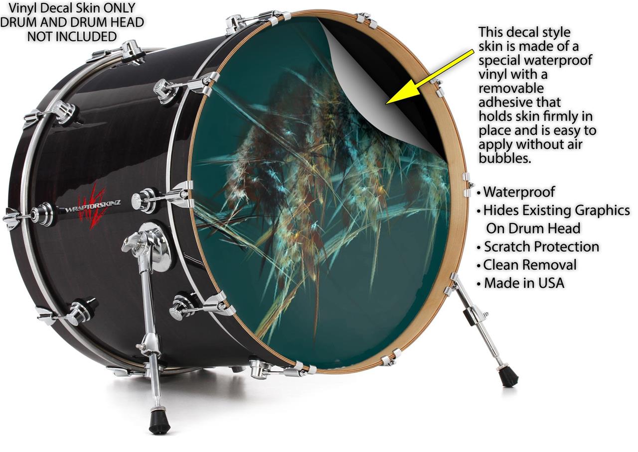 This design also available in other sizes. WraptorSkinz® skin wraps compatible with most kick drum heads. Printed using superb photo quality designs and vibrant colors printed with special fade resistant inks that last even in direct sun for years. WraptorSkinz are a composite three layer commercial grade materials vinyl. The bottom layer is a air release, grey block out removable adhesive that hides existing graphics on the drum head and is easily applied without air bubbles. The middle layer is a flexible vinyl printed with UV protected, fade resistant inks that deliver superb photo quality designs in vibrant colors. Finally, we bond a professional grade laminate over the entire skin adding a glossy protective finish.
