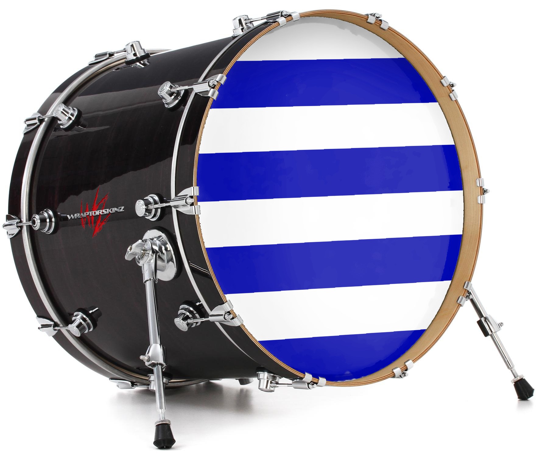 Vinyl Decal Skin Wrap for 22" Bass Kick Drum Head Psycho Stripes Blue and White - DRUM HEAD NOT INCLUDED