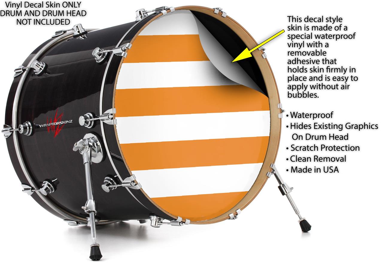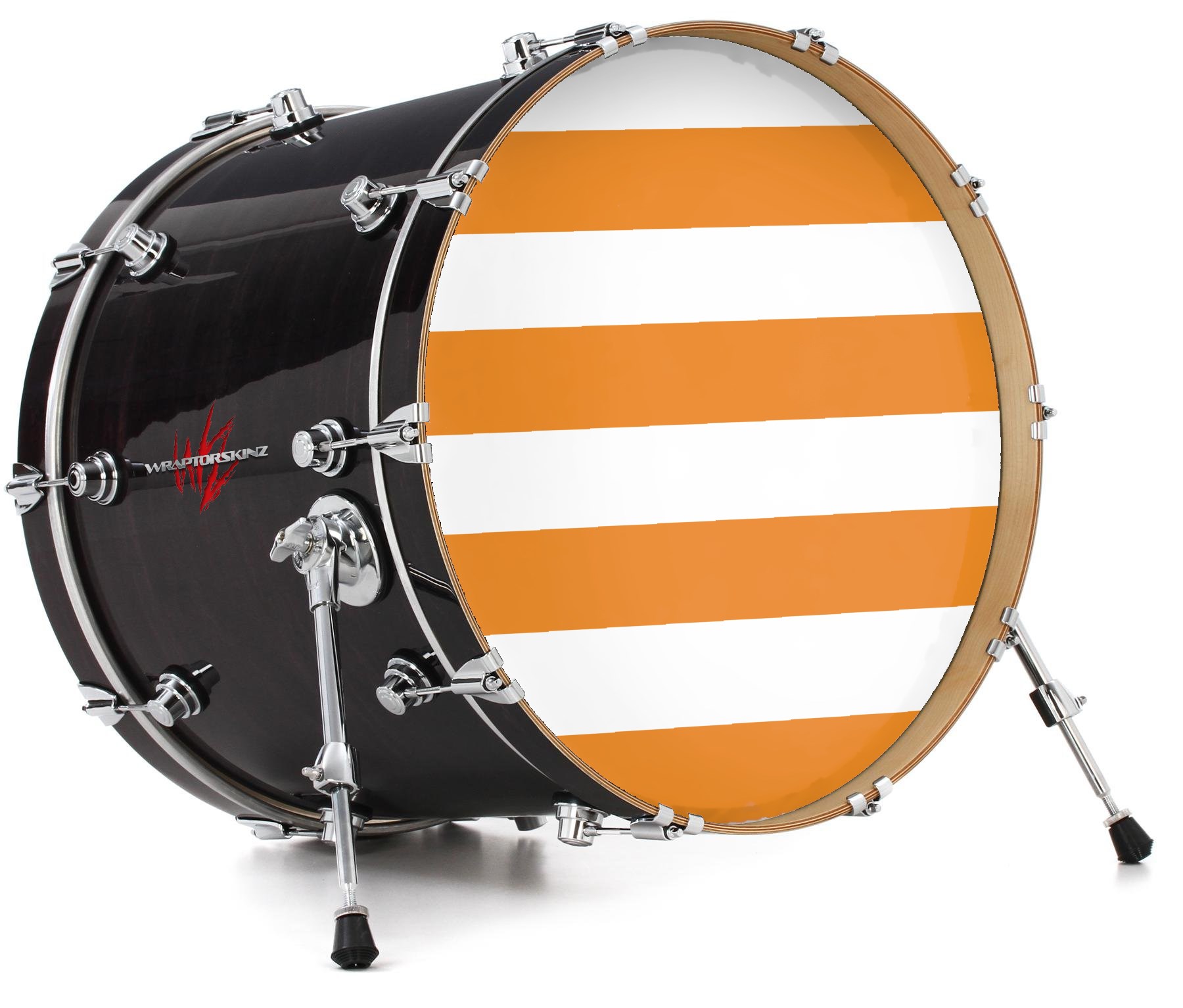 Vinyl Decal Skin Wrap for 22" Bass Kick Drum Head Psycho Stripes Orange and White - DRUM HEAD NOT INCLUDED