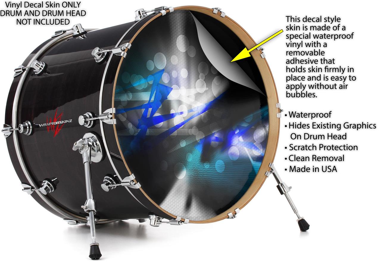 This design also available in other sizes. WraptorSkinz® skin wraps compatible with most kick drum heads. Printed using superb photo quality designs and vibrant colors printed with special fade resistant inks that last even in direct sun for years. WraptorSkinz are a composite three layer commercial grade materials vinyl. The bottom layer is a air release, grey block out removable adhesive that hides existing graphics on the drum head and is easily applied without air bubbles. The middle layer is a flexible vinyl printed with UV protected, fade resistant inks that deliver superb photo quality designs in vibrant colors. Finally, we bond a professional grade laminate over the entire skin adding a glossy protective finish.