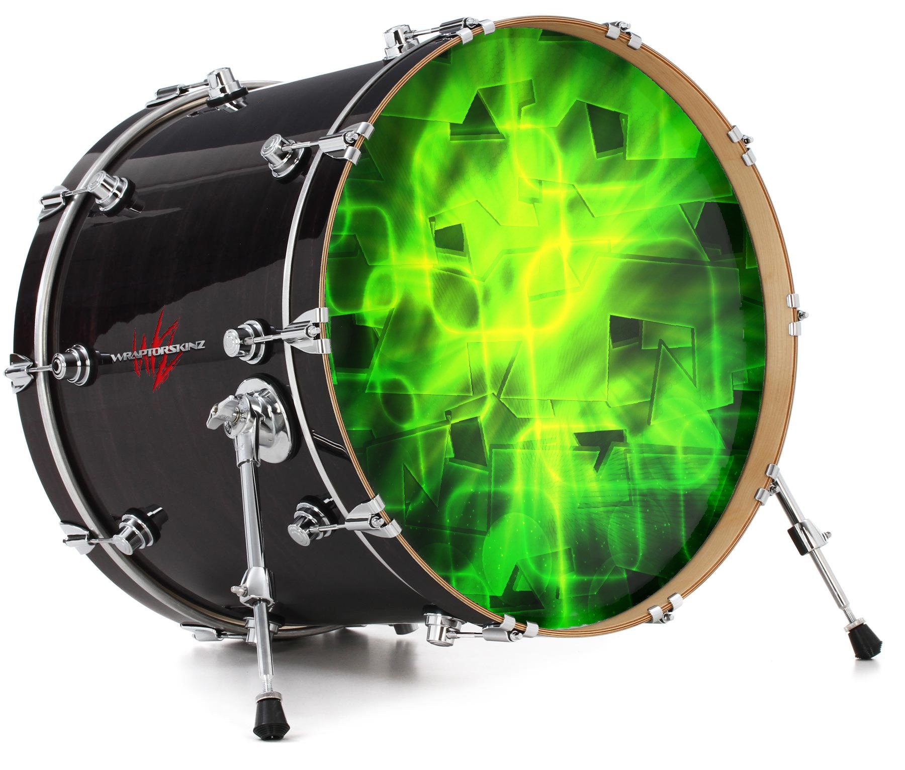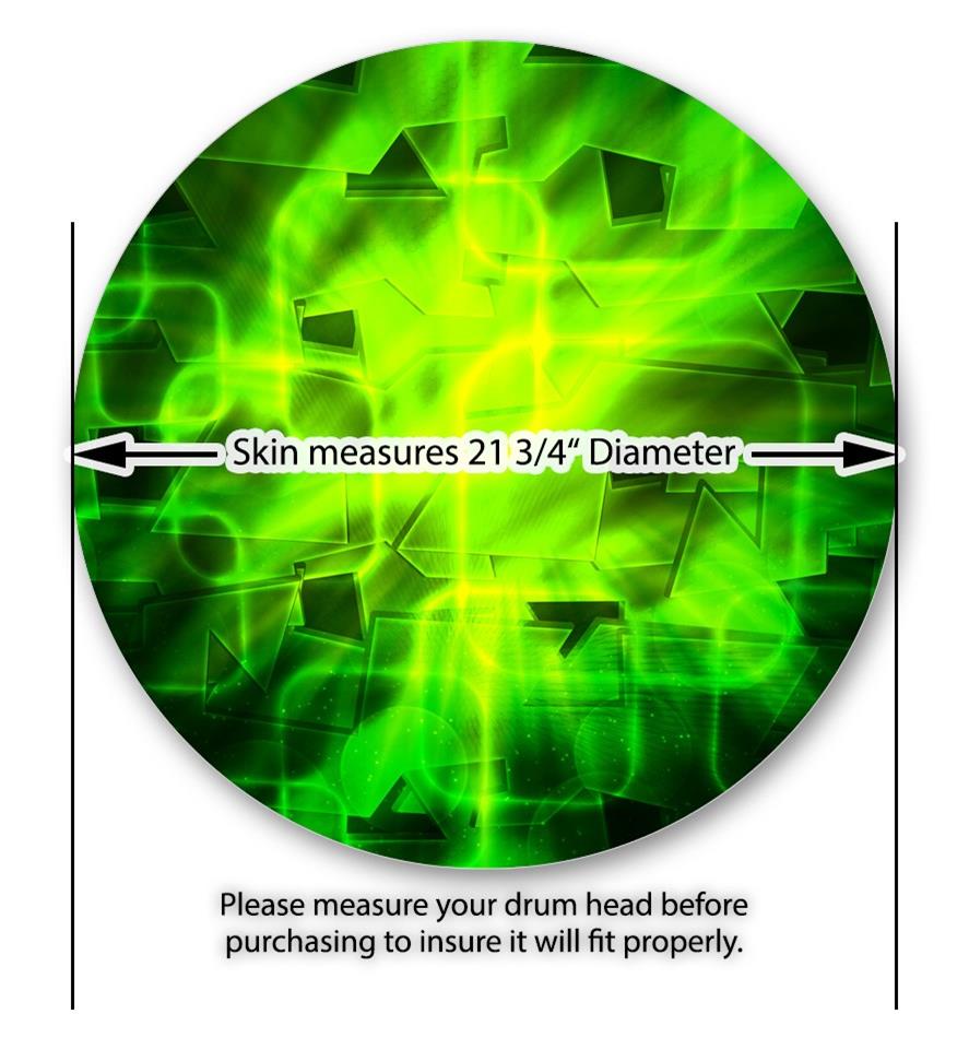 This design also available in other sizes. WraptorSkinz® skin wraps compatible with most kick drum heads. Printed using superb photo quality designs and vibrant colors printed with special fade resistant inks that last even in direct sun for years. WraptorSkinz are a composite three layer commercial grade materials vinyl. The bottom layer is a air release, grey block out removable adhesive that hides existing graphics on the drum head and is easily applied without air bubbles. The middle layer is a flexible vinyl printed with UV protected, fade resistant inks that deliver superb photo quality designs in vibrant colors. Finally, we bond a professional grade laminate over the entire skin adding a glossy protective finish.