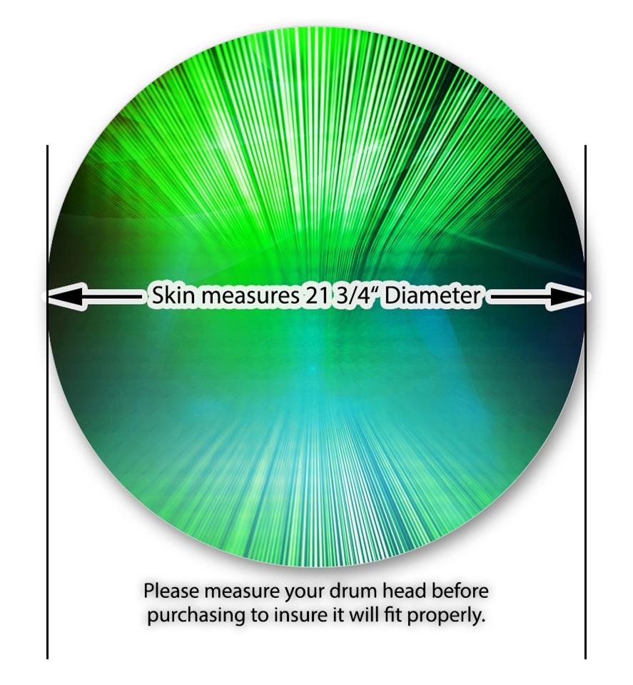This design also available in other sizes. WraptorSkinz® skin wraps compatible with most kick drum heads. Printed using superb photo quality designs and vibrant colors printed with special fade resistant inks that last even in direct sun for years. WraptorSkinz are a composite three layer commercial grade materials vinyl. The bottom layer is a air release, grey block out removable adhesive that hides existing graphics on the drum head and is easily applied without air bubbles. The middle layer is a flexible vinyl printed with UV protected, fade resistant inks that deliver superb photo quality designs in vibrant colors. Finally, we bond a professional grade laminate over the entire skin adding a glossy protective finish.