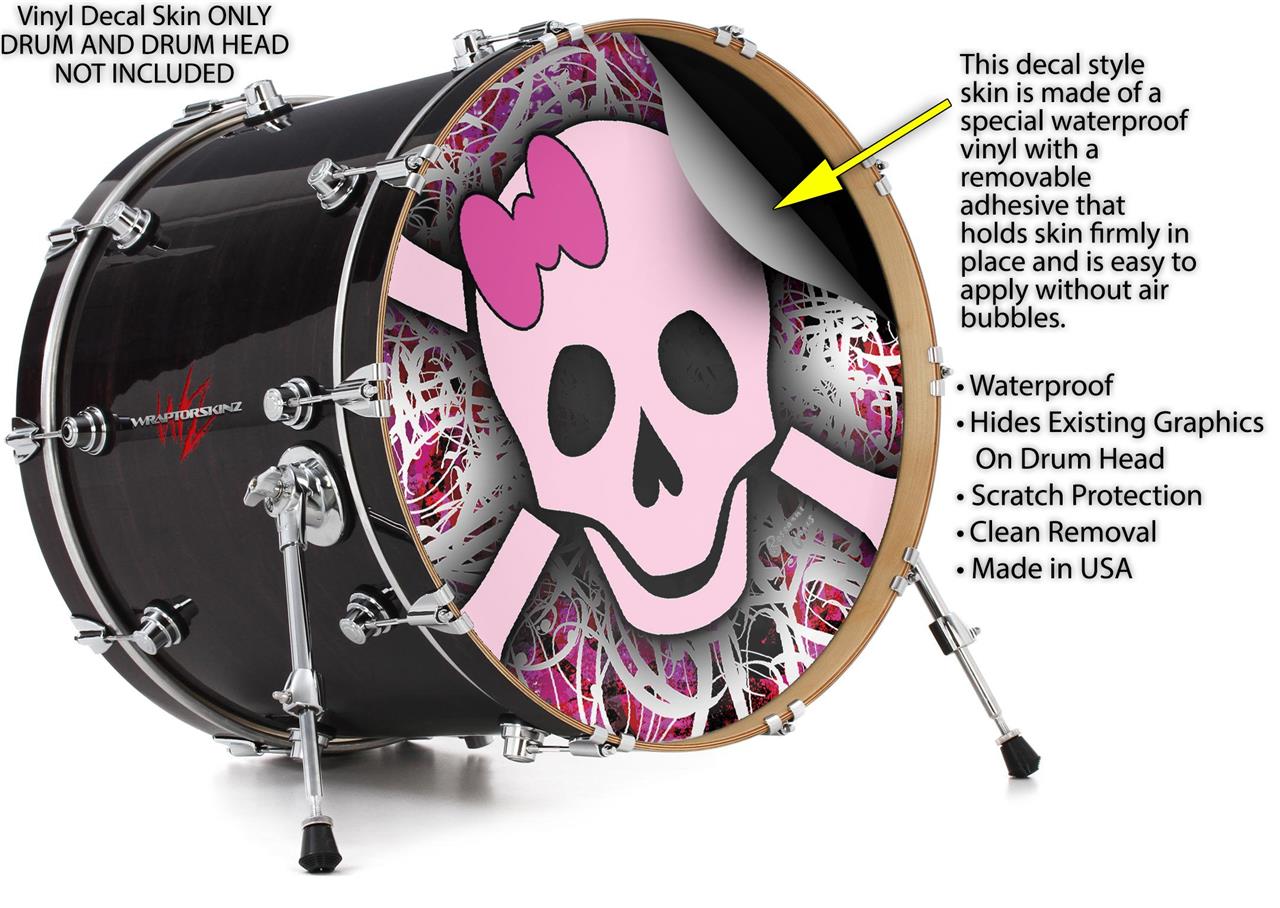 Vinyl Decal Skin Wrap for 22" Bass Kick Drum Head Pink Skull - DRUM HEAD NOT INCLUDED