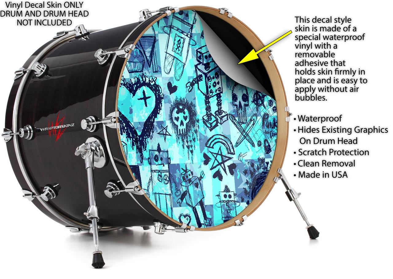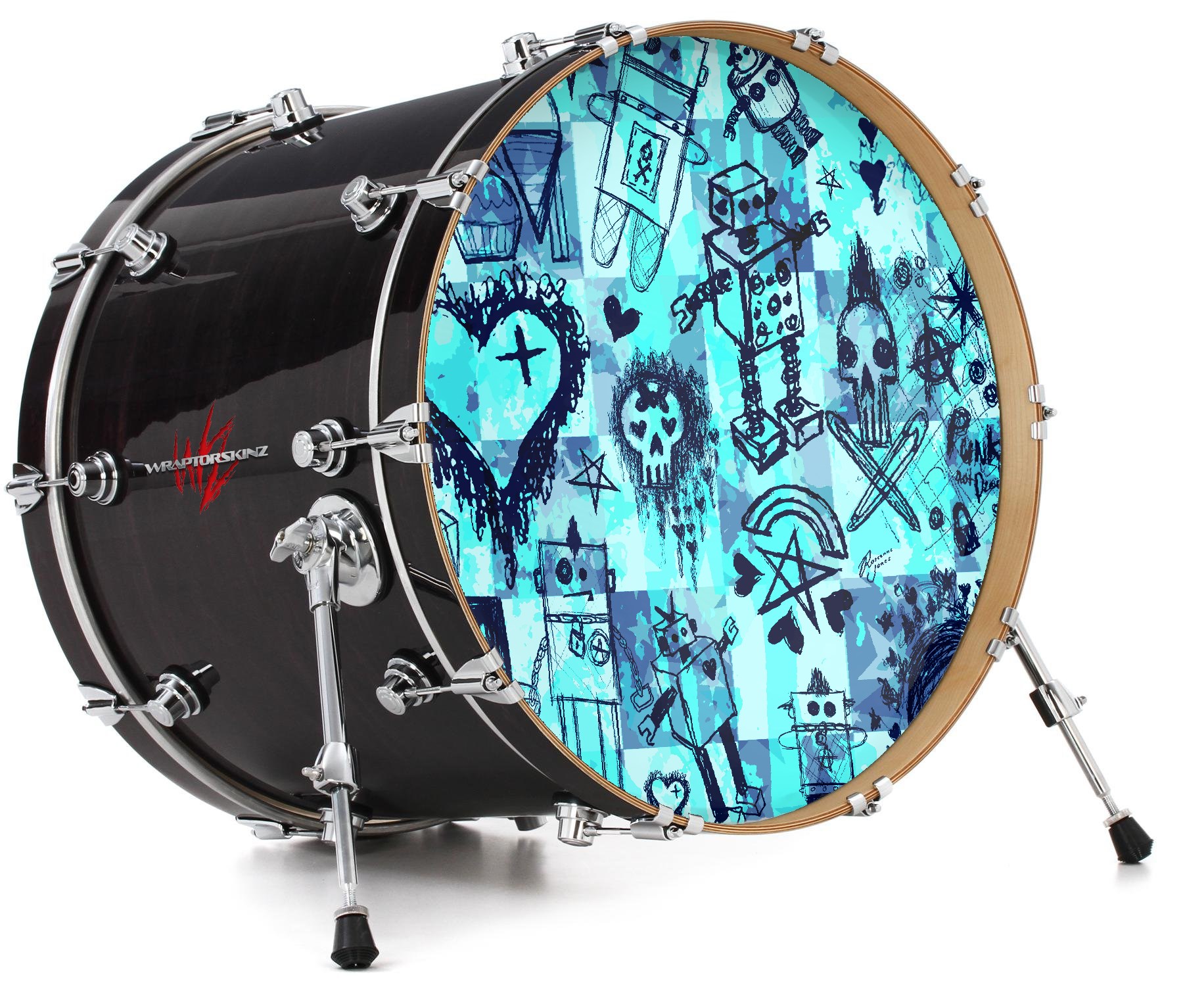 Vinyl Decal Skin Wrap for 22" Bass Kick Drum Head Scene Kid Sketches Blue - DRUM HEAD NOT INCLUDED