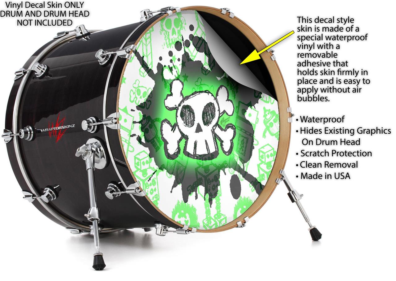 Vinyl Decal Skin Wrap for 22" Bass Kick Drum Head Cartoon Skull Green - DRUM HEAD NOT INCLUDED
