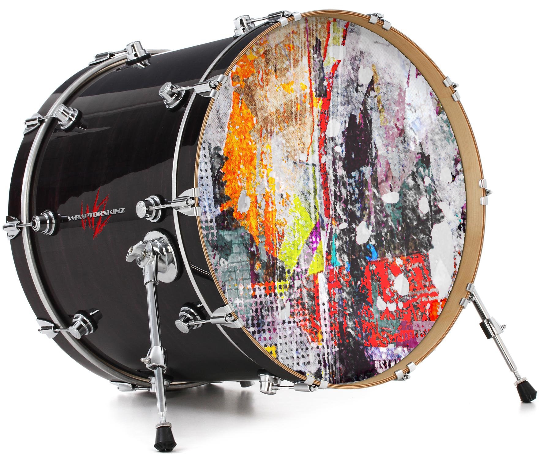 This design also available in other sizes. WraptorSkinz® skin wraps compatible with most kick drum heads. Printed using superb photo quality designs and vibrant colors printed with special fade resistant inks that last even in direct sun for years. WraptorSkinz are a composite three layer commercial grade materials vinyl. The bottom layer is a air release, grey block out removable adhesive that hides existing graphics on the drum head and is easily applied without air bubbles. The middle layer is a flexible vinyl printed with UV protected, fade resistant inks that deliver superb photo quality designs in vibrant colors. Finally, we bond a professional grade laminate over the entire skin adding a glossy protective finish.