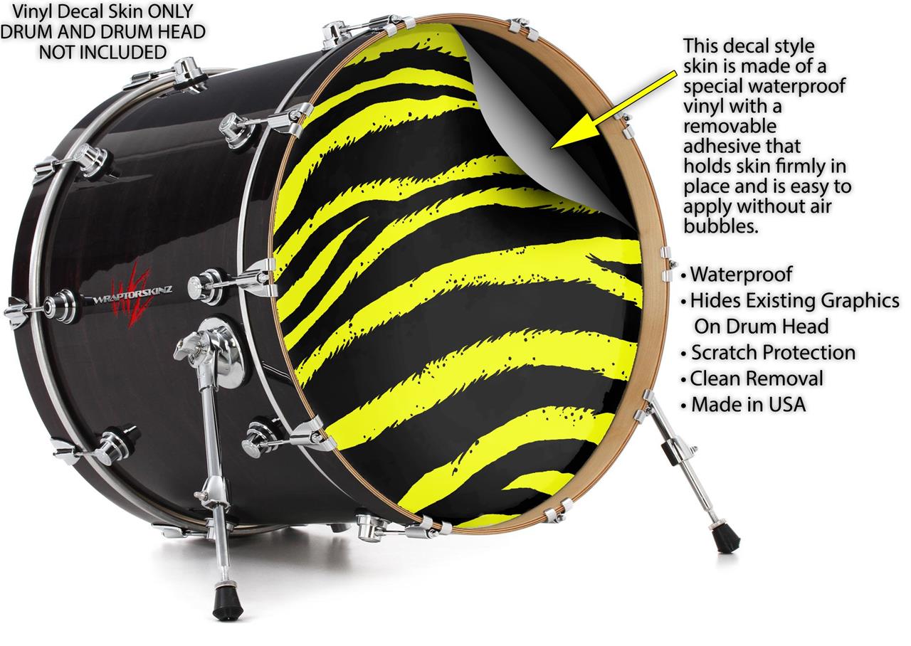 Vinyl Decal Skin Wrap for 22" Bass Kick Drum Head Zebra Yellow - DRUM HEAD NOT INCLUDED