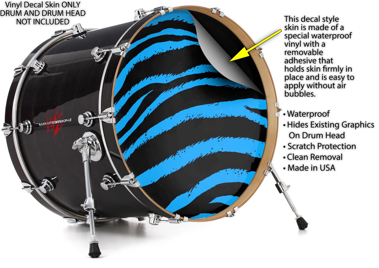 Vinyl Decal Skin Wrap for 22" Bass Kick Drum Head Zebra Blue - DRUM HEAD NOT INCLUDED