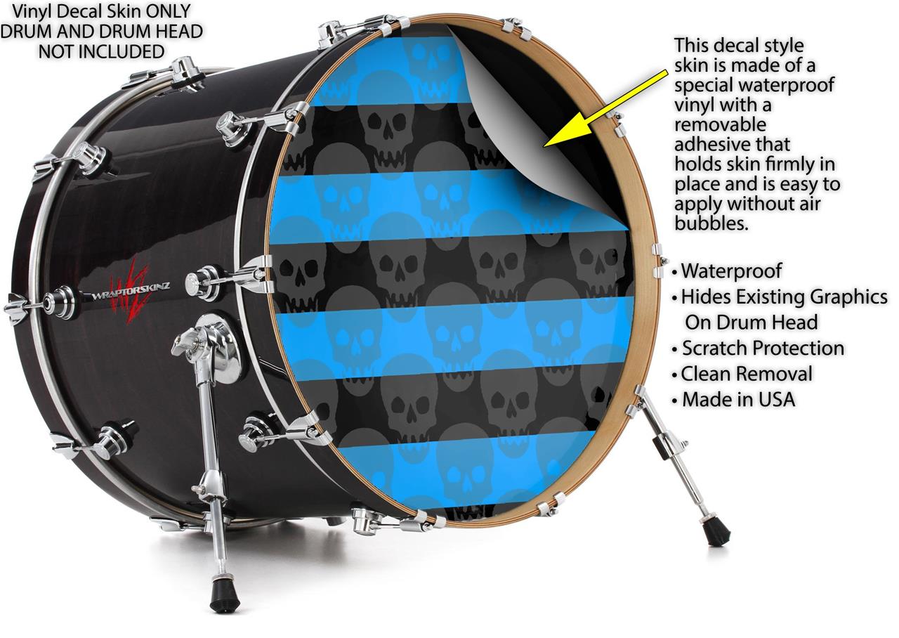 Vinyl Decal Skin Wrap for 22" Bass Kick Drum Head Skull Stripes Blue - DRUM HEAD NOT INCLUDED