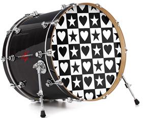 Vinyl Decal Skin Wrap for 22" Bass Kick Drum Head Hearts And Stars Black and White - DRUM HEAD NOT INCLUDED