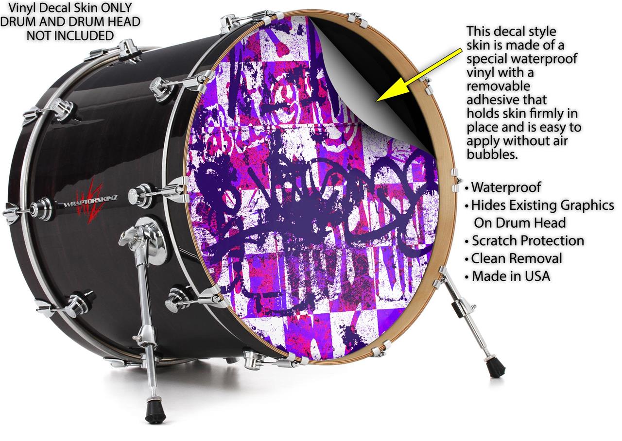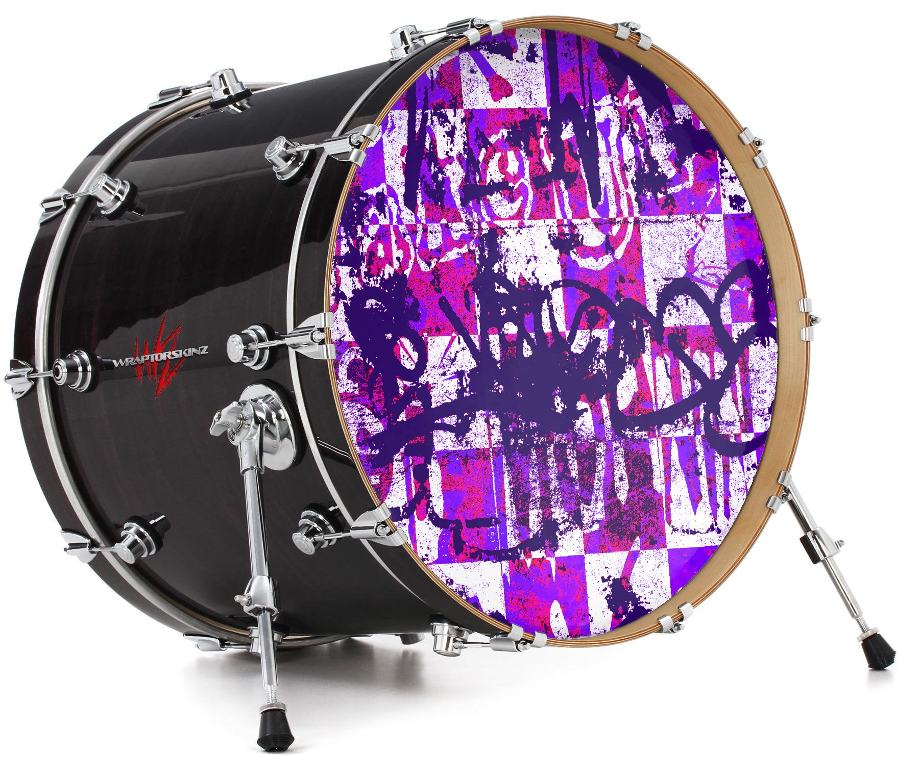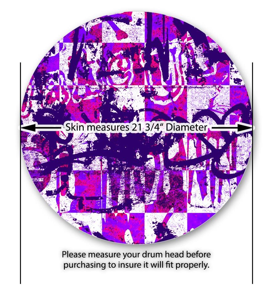 Vinyl Decal Skin Wrap for 22" Bass Kick Drum Head Purple Checker Graffiti - DRUM HEAD NOT INCLUDED