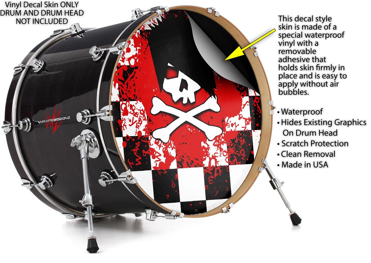 Vinyl Decal Skin Wrap for 22" Bass Kick Drum Head Emo Skull 5 - DRUM HEAD NOT INCLUDED