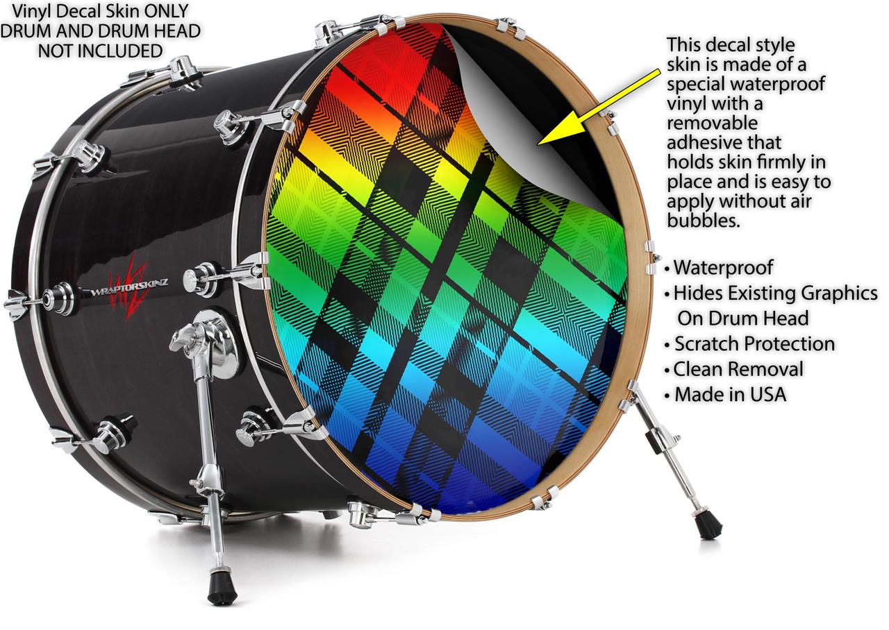 Vinyl Decal Skin Wrap for 22" Bass Kick Drum Head Rainbow Plaid - DRUM HEAD NOT INCLUDED