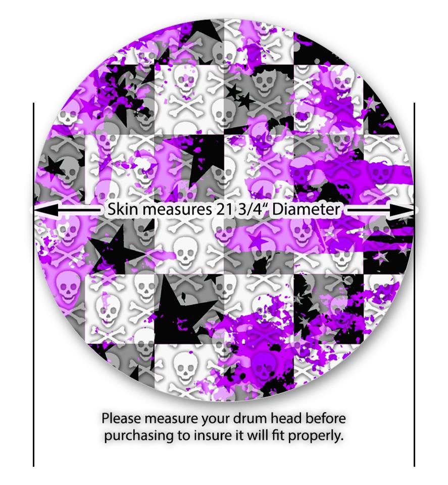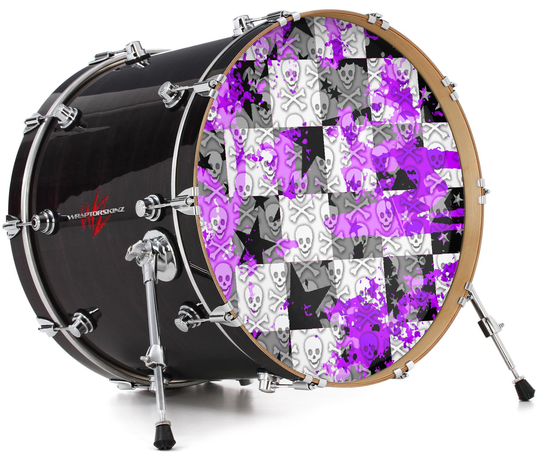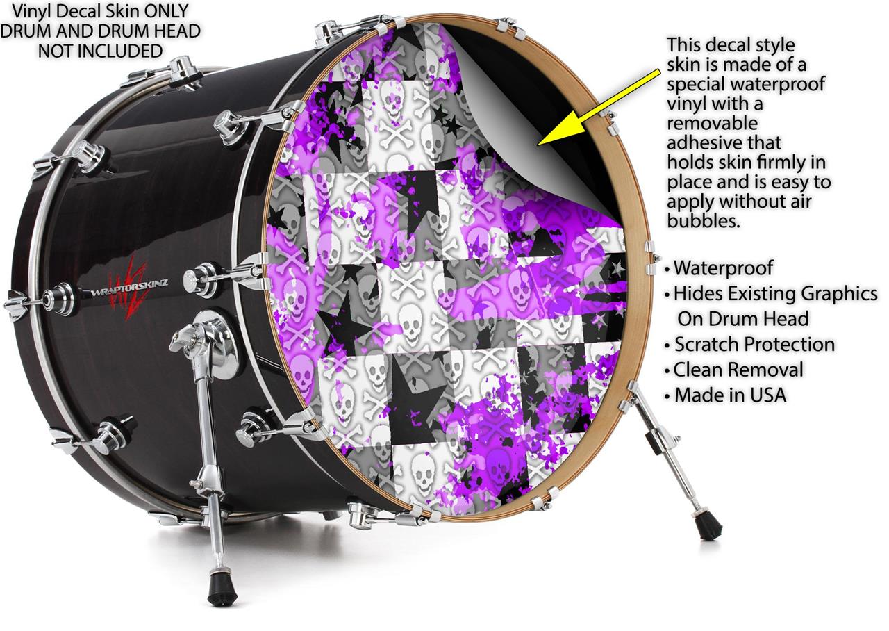 Vinyl Decal Skin Wrap for 22" Bass Kick Drum Head Purple Checker Skull Splatter - DRUM HEAD NOT INCLUDED