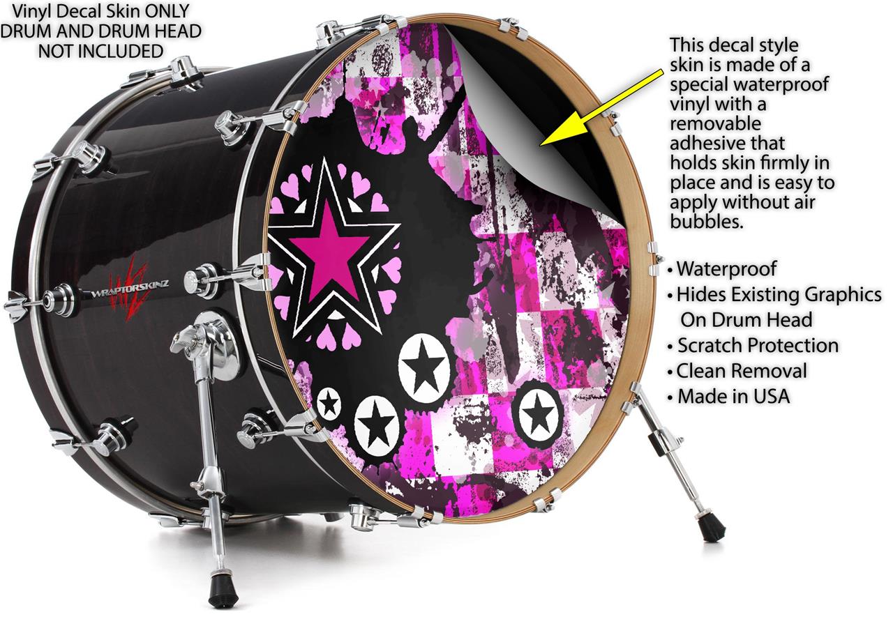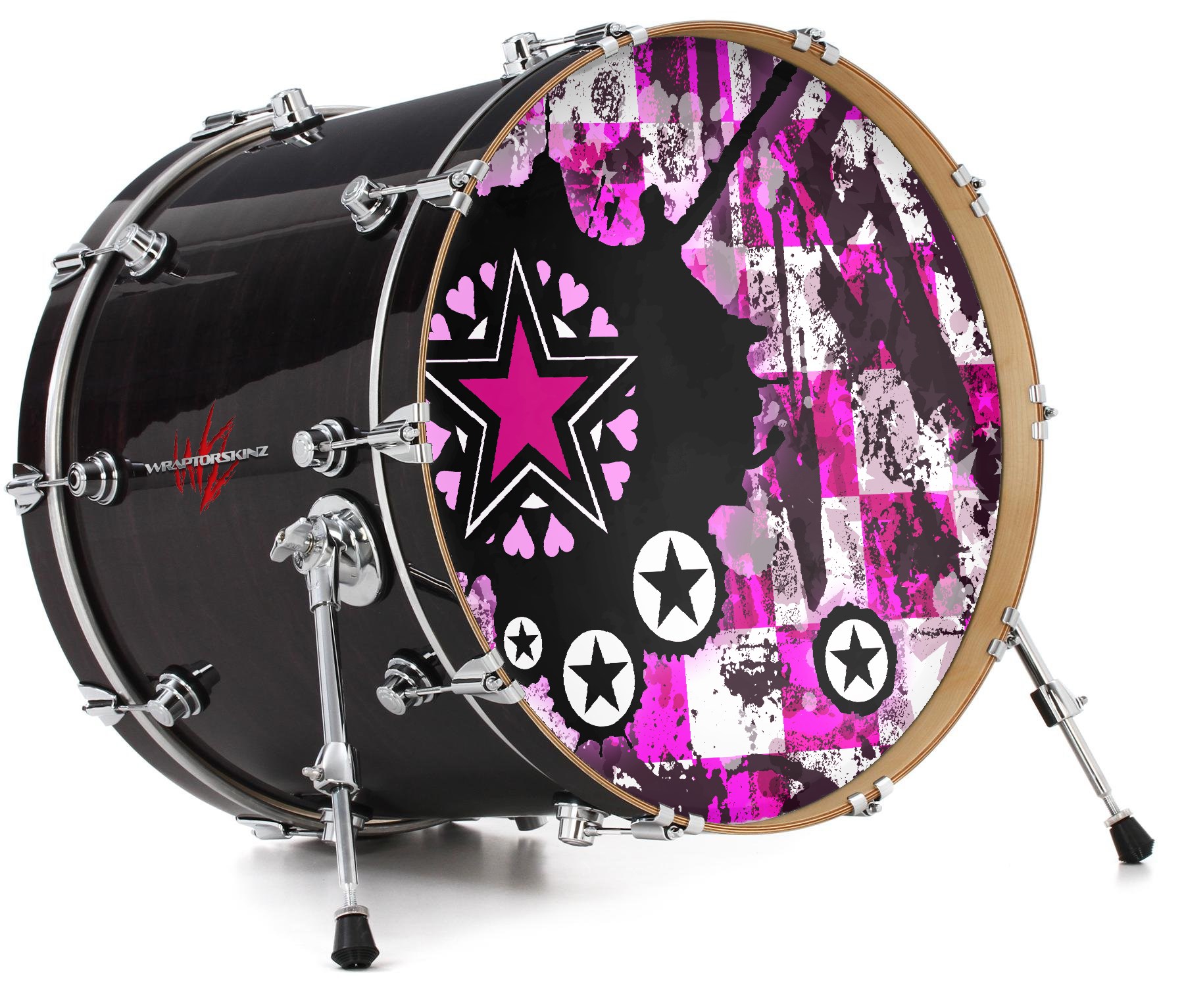 Vinyl Decal Skin Wrap for 22" Bass Kick Drum Head Pink Star Splatter - DRUM HEAD NOT INCLUDED