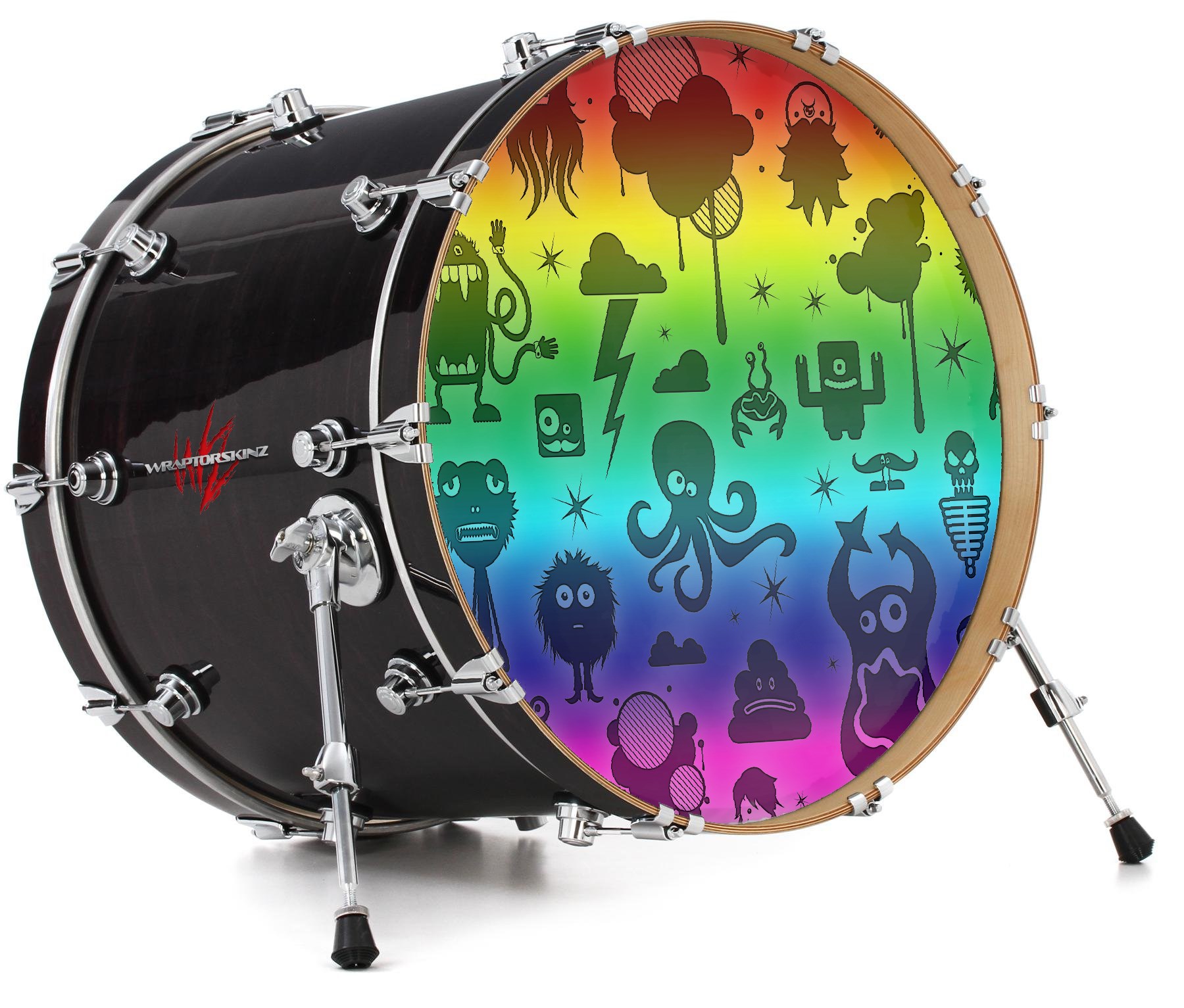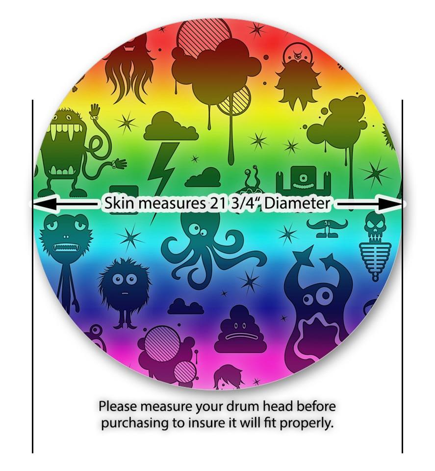Vinyl Decal Skin Wrap for 22" Bass Kick Drum Head Cute Rainbow Monsters - DRUM HEAD NOT INCLUDED