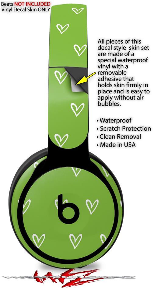 WraptorSkinz Skin Skin Decal Wrap works with Beats Solo Pro (Original) Headphones Hearts Green On White Skin Only BEATS NOT INCLUDED