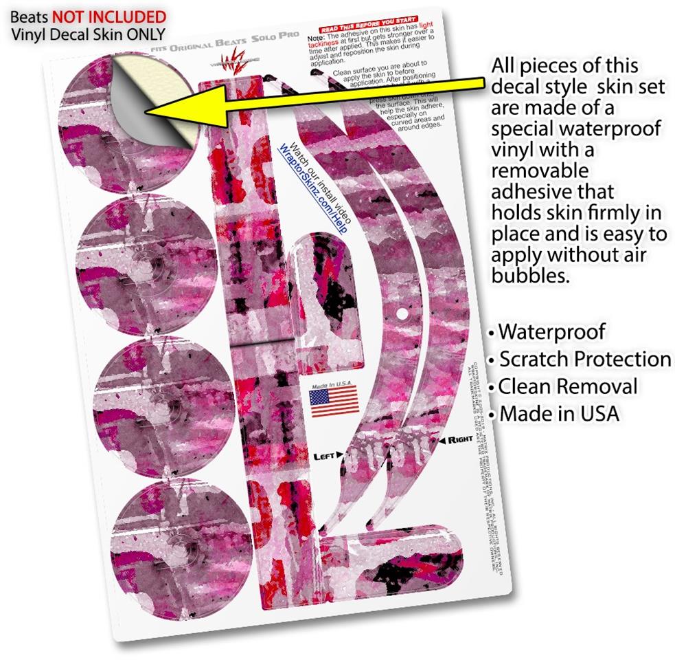 This product is in no way affiliated with or endorsed by Apple or Beats brand products. WraptorSkinz® skin wraps work with the Original Beats Solo Pro version 1 headphones. Printed using superb photo quality designs and vibrant colors printed with special fade resistant inks that last even in direct sun for years. WraptorSkinz are a composite of two layers of commercial grade materials. The bottom layer is a soft, flexible vinyl with a special removable adhesive that is easily positioned, applied without air bubbles. Next, we print the bottom layer with UV protected, fade resistant inks that deliver superb photo quality designs in vibrant colors. Finally, we bond a professional grade laminate over the entire skin adding a glossy protective finish.