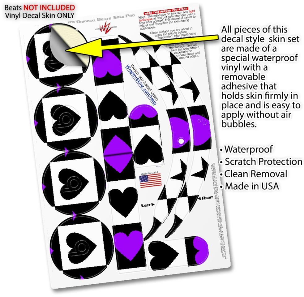 WraptorSkinz Skin Skin Decal Wrap works with Beats Solo Pro (Original) Headphones Purple Hearts And Stars Skin Only BEATS NOT INCLUDED