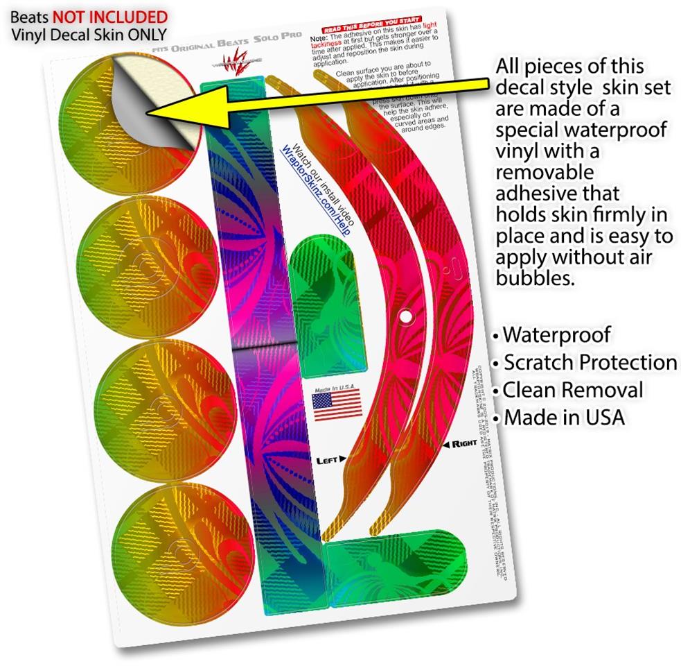 This product is in no way affiliated with or endorsed by Apple or Beats brand products. WraptorSkinz® skin wraps work with the Original Beats Solo Pro version 1 headphones. Printed using superb photo quality designs and vibrant colors printed with special fade resistant inks that last even in direct sun for years. WraptorSkinz are a composite of two layers of commercial grade materials. The bottom layer is a soft, flexible vinyl with a special removable adhesive that is easily positioned, applied without air bubbles. Next, we print the bottom layer with UV protected, fade resistant inks that deliver superb photo quality designs in vibrant colors. Finally, we bond a professional grade laminate over the entire skin adding a glossy protective finish.
