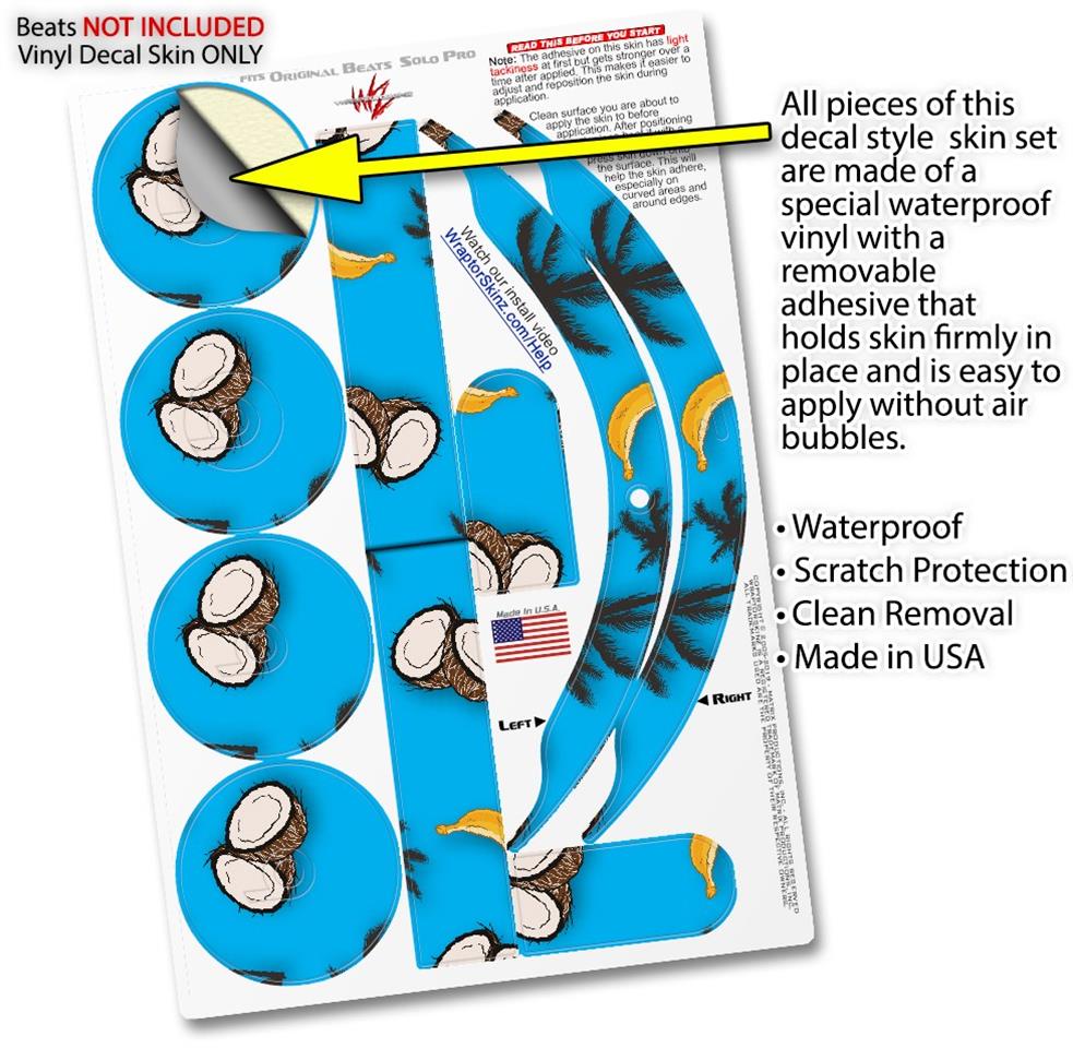 WraptorSkinz Skin Skin Decal Wrap works with Beats Solo Pro (Original) Headphones Coconuts Palm Trees and Bananas Blue Medium Skin Only BEATS NOT INCLUDED