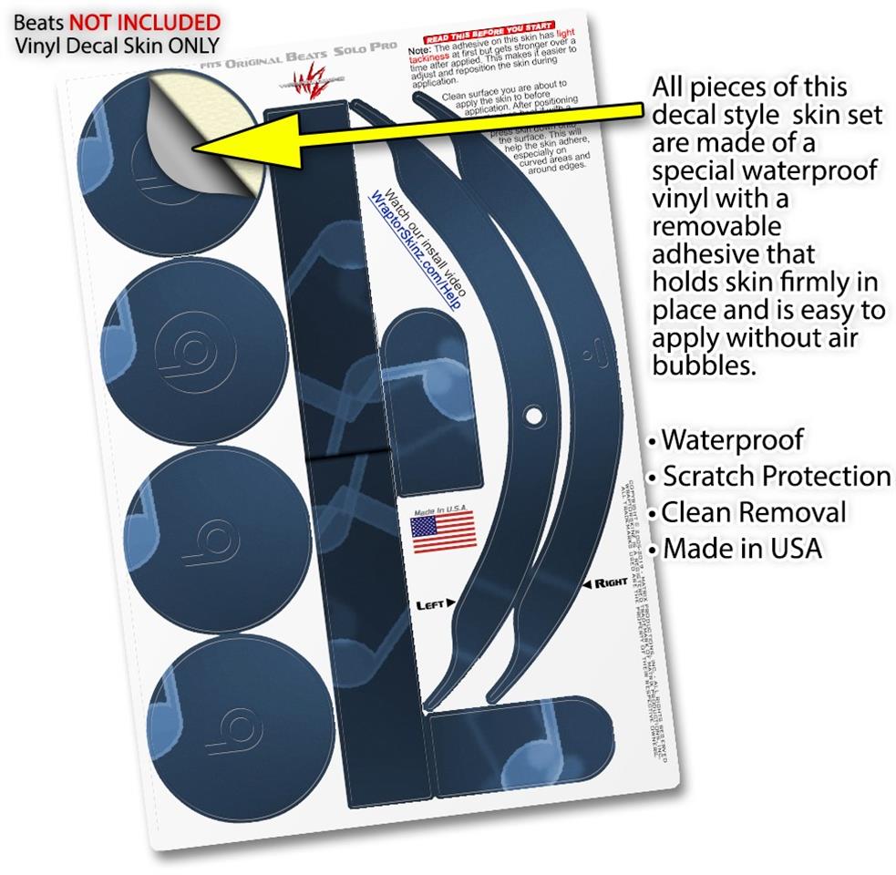 This product is in no way affiliated with or endorsed by Apple or Beats brand products. WraptorSkinz® skin wraps work with the Original Beats Solo Pro version 1 headphones. Printed using superb photo quality designs and vibrant colors printed with special fade resistant inks that last even in direct sun for years. WraptorSkinz are a composite of two layers of commercial grade materials. The bottom layer is a soft, flexible vinyl with a special removable adhesive that is easily positioned, applied without air bubbles. Next, we print the bottom layer with UV protected, fade resistant inks that deliver superb photo quality designs in vibrant colors. Finally, we bond a professional grade laminate over the entire skin adding a glossy protective finish.