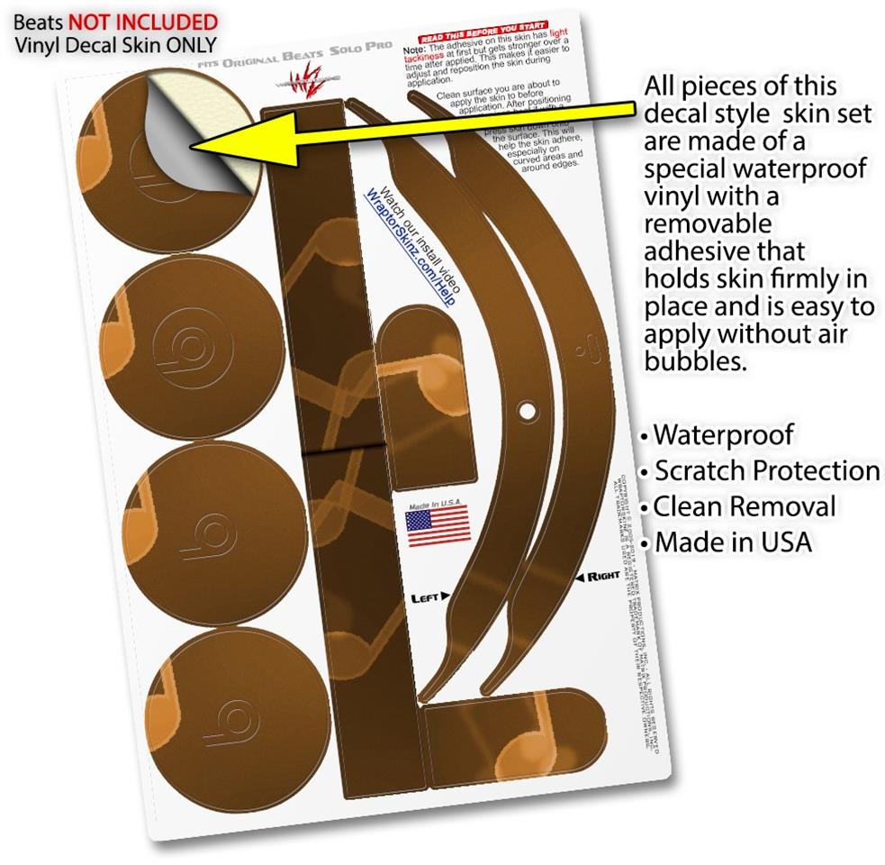 This product is in no way affiliated with or endorsed by Apple or Beats brand products. WraptorSkinz® skin wraps work with the Original Beats Solo Pro version 1 headphones. Printed using superb photo quality designs and vibrant colors printed with special fade resistant inks that last even in direct sun for years. WraptorSkinz are a composite of two layers of commercial grade materials. The bottom layer is a soft, flexible vinyl with a special removable adhesive that is easily positioned, applied without air bubbles. Next, we print the bottom layer with UV protected, fade resistant inks that deliver superb photo quality designs in vibrant colors. Finally, we bond a professional grade laminate over the entire skin adding a glossy protective finish.