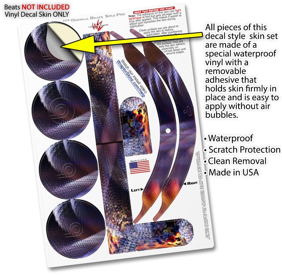 This product is in no way affiliated with or endorsed by Apple or Beats brand products. WraptorSkinz® skin wraps work with the Original Beats Solo Pro version 1 headphones. Printed using superb photo quality designs and vibrant colors printed with special fade resistant inks that last even in direct sun for years. WraptorSkinz are a composite of two layers of commercial grade materials. The bottom layer is a soft, flexible vinyl with a special removable adhesive that is easily positioned, applied without air bubbles. Next, we print the bottom layer with UV protected, fade resistant inks that deliver superb photo quality designs in vibrant colors. Finally, we bond a professional grade laminate over the entire skin adding a glossy protective finish.