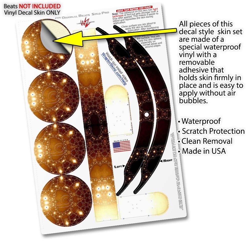 This product is in no way affiliated with or endorsed by Apple or Beats brand products. WraptorSkinz® skin wraps work with the Original Beats Solo Pro version 1 headphones. Printed using superb photo quality designs and vibrant colors printed with special fade resistant inks that last even in direct sun for years. WraptorSkinz are a composite of two layers of commercial grade materials. The bottom layer is a soft, flexible vinyl with a special removable adhesive that is easily positioned, applied without air bubbles. Next, we print the bottom layer with UV protected, fade resistant inks that deliver superb photo quality designs in vibrant colors. Finally, we bond a professional grade laminate over the entire skin adding a glossy protective finish.