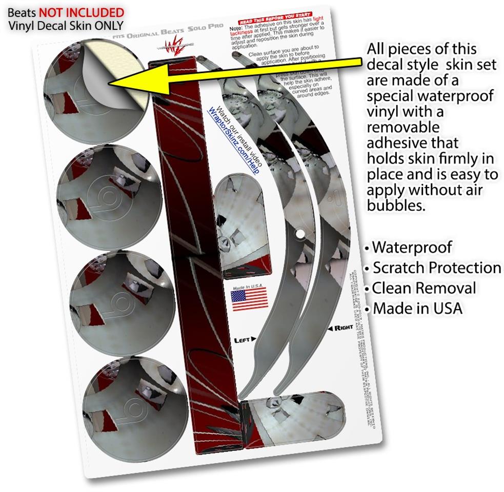 This product is in no way affiliated with or endorsed by Apple or Beats brand products. WraptorSkinz® skin wraps work with the Original Beats Solo Pro version 1 headphones. Printed using superb photo quality designs and vibrant colors printed with special fade resistant inks that last even in direct sun for years. WraptorSkinz are a composite of two layers of commercial grade materials. The bottom layer is a soft, flexible vinyl with a special removable adhesive that is easily positioned, applied without air bubbles. Next, we print the bottom layer with UV protected, fade resistant inks that deliver superb photo quality designs in vibrant colors. Finally, we bond a professional grade laminate over the entire skin adding a glossy protective finish.