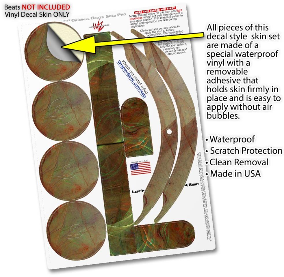This product is in no way affiliated with or endorsed by Apple or Beats brand products. WraptorSkinz® skin wraps work with the Original Beats Solo Pro version 1 headphones. Printed using superb photo quality designs and vibrant colors printed with special fade resistant inks that last even in direct sun for years. WraptorSkinz are a composite of two layers of commercial grade materials. The bottom layer is a soft, flexible vinyl with a special removable adhesive that is easily positioned, applied without air bubbles. Next, we print the bottom layer with UV protected, fade resistant inks that deliver superb photo quality designs in vibrant colors. Finally, we bond a professional grade laminate over the entire skin adding a glossy protective finish.