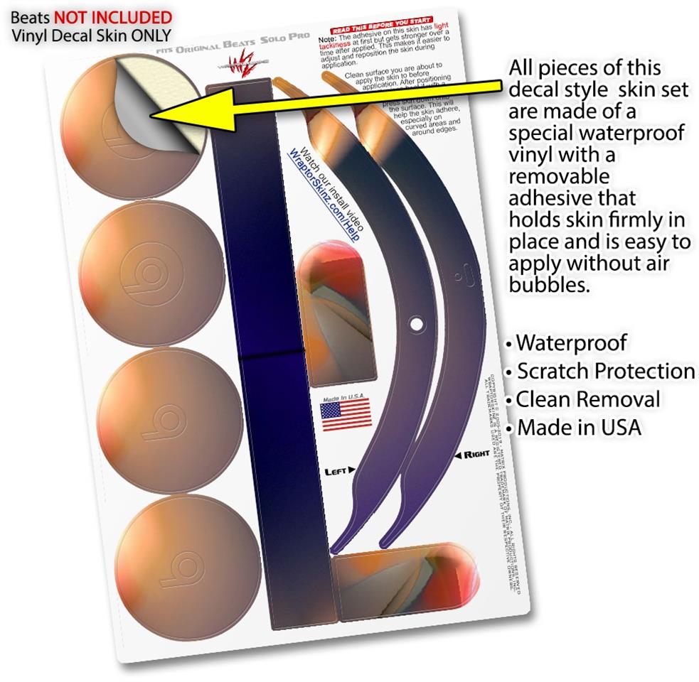 This product is in no way affiliated with or endorsed by Apple or Beats brand products. WraptorSkinz® skin wraps work with the Original Beats Solo Pro version 1 headphones. Printed using superb photo quality designs and vibrant colors printed with special fade resistant inks that last even in direct sun for years. WraptorSkinz are a composite of two layers of commercial grade materials. The bottom layer is a soft, flexible vinyl with a special removable adhesive that is easily positioned, applied without air bubbles. Next, we print the bottom layer with UV protected, fade resistant inks that deliver superb photo quality designs in vibrant colors. Finally, we bond a professional grade laminate over the entire skin adding a glossy protective finish.