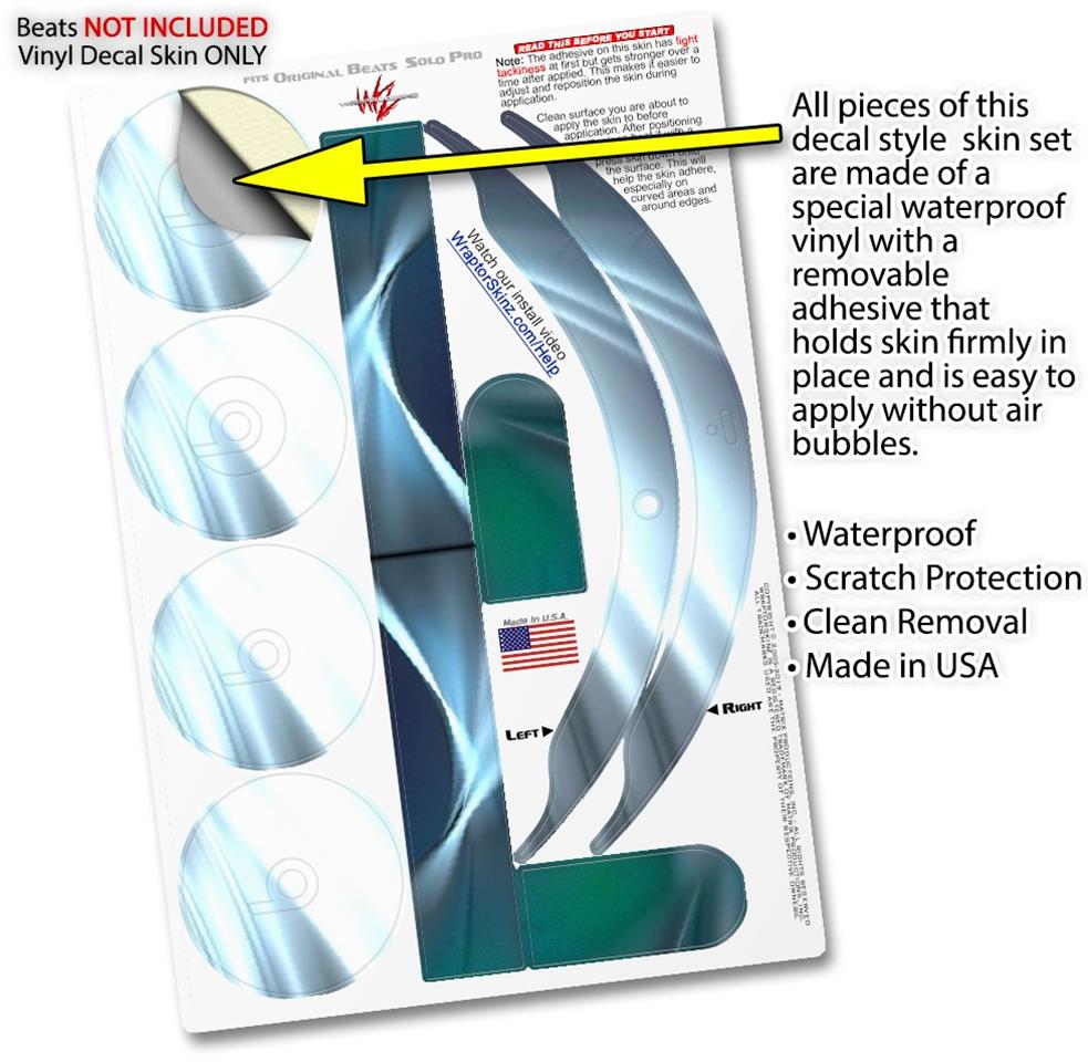This product is in no way affiliated with or endorsed by Apple or Beats brand products. WraptorSkinz® skin wraps work with the Original Beats Solo Pro version 1 headphones. Printed using superb photo quality designs and vibrant colors printed with special fade resistant inks that last even in direct sun for years. WraptorSkinz are a composite of two layers of commercial grade materials. The bottom layer is a soft, flexible vinyl with a special removable adhesive that is easily positioned, applied without air bubbles. Next, we print the bottom layer with UV protected, fade resistant inks that deliver superb photo quality designs in vibrant colors. Finally, we bond a professional grade laminate over the entire skin adding a glossy protective finish.