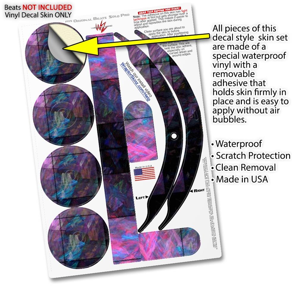 This product is in no way affiliated with or endorsed by Apple or Beats brand products. WraptorSkinz® skin wraps work with the Original Beats Solo Pro version 1 headphones. Printed using superb photo quality designs and vibrant colors printed with special fade resistant inks that last even in direct sun for years. WraptorSkinz are a composite of two layers of commercial grade materials. The bottom layer is a soft, flexible vinyl with a special removable adhesive that is easily positioned, applied without air bubbles. Next, we print the bottom layer with UV protected, fade resistant inks that deliver superb photo quality designs in vibrant colors. Finally, we bond a professional grade laminate over the entire skin adding a glossy protective finish.