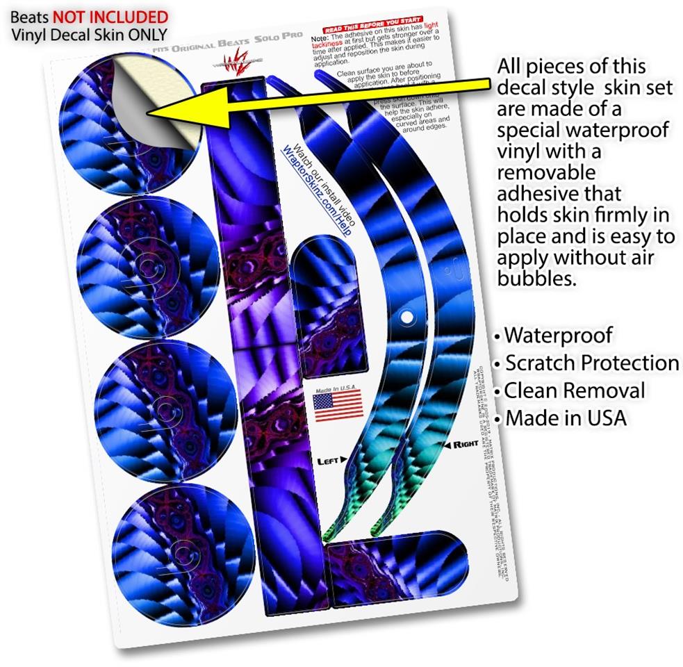 This product is in no way affiliated with or endorsed by Apple or Beats brand products. WraptorSkinz® skin wraps work with the Original Beats Solo Pro version 1 headphones. Printed using superb photo quality designs and vibrant colors printed with special fade resistant inks that last even in direct sun for years. WraptorSkinz are a composite of two layers of commercial grade materials. The bottom layer is a soft, flexible vinyl with a special removable adhesive that is easily positioned, applied without air bubbles. Next, we print the bottom layer with UV protected, fade resistant inks that deliver superb photo quality designs in vibrant colors. Finally, we bond a professional grade laminate over the entire skin adding a glossy protective finish.