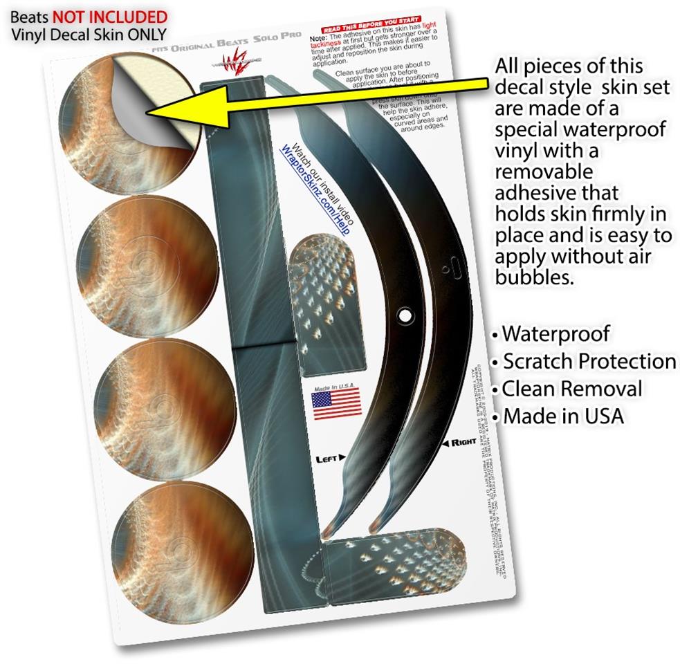 This product is in no way affiliated with or endorsed by Apple or Beats brand products. WraptorSkinz® skin wraps work with the Original Beats Solo Pro version 1 headphones. Printed using superb photo quality designs and vibrant colors printed with special fade resistant inks that last even in direct sun for years. WraptorSkinz are a composite of two layers of commercial grade materials. The bottom layer is a soft, flexible vinyl with a special removable adhesive that is easily positioned, applied without air bubbles. Next, we print the bottom layer with UV protected, fade resistant inks that deliver superb photo quality designs in vibrant colors. Finally, we bond a professional grade laminate over the entire skin adding a glossy protective finish.