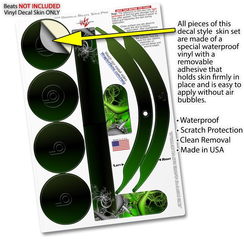 This product is in no way affiliated with or endorsed by Apple or Beats brand products. WraptorSkinz® skin wraps work with the Original Beats Solo Pro version 1 headphones. Printed using superb photo quality designs and vibrant colors printed with special fade resistant inks that last even in direct sun for years. WraptorSkinz are a composite of two layers of commercial grade materials. The bottom layer is a soft, flexible vinyl with a special removable adhesive that is easily positioned, applied without air bubbles. Next, we print the bottom layer with UV protected, fade resistant inks that deliver superb photo quality designs in vibrant colors. Finally, we bond a professional grade laminate over the entire skin adding a glossy protective finish.