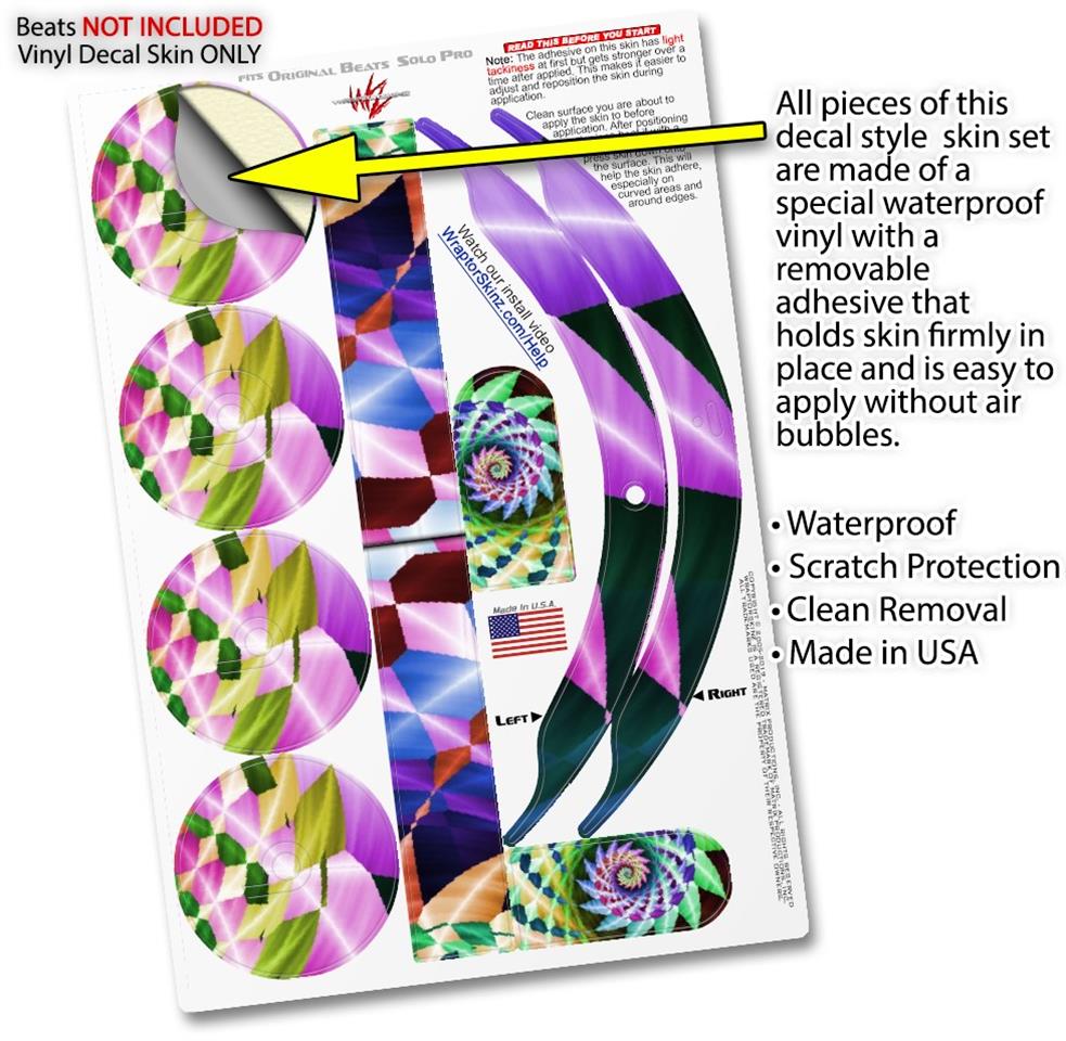 This product is in no way affiliated with or endorsed by Apple or Beats brand products. WraptorSkinz® skin wraps work with the Original Beats Solo Pro version 1 headphones. Printed using superb photo quality designs and vibrant colors printed with special fade resistant inks that last even in direct sun for years. WraptorSkinz are a composite of two layers of commercial grade materials. The bottom layer is a soft, flexible vinyl with a special removable adhesive that is easily positioned, applied without air bubbles. Next, we print the bottom layer with UV protected, fade resistant inks that deliver superb photo quality designs in vibrant colors. Finally, we bond a professional grade laminate over the entire skin adding a glossy protective finish.