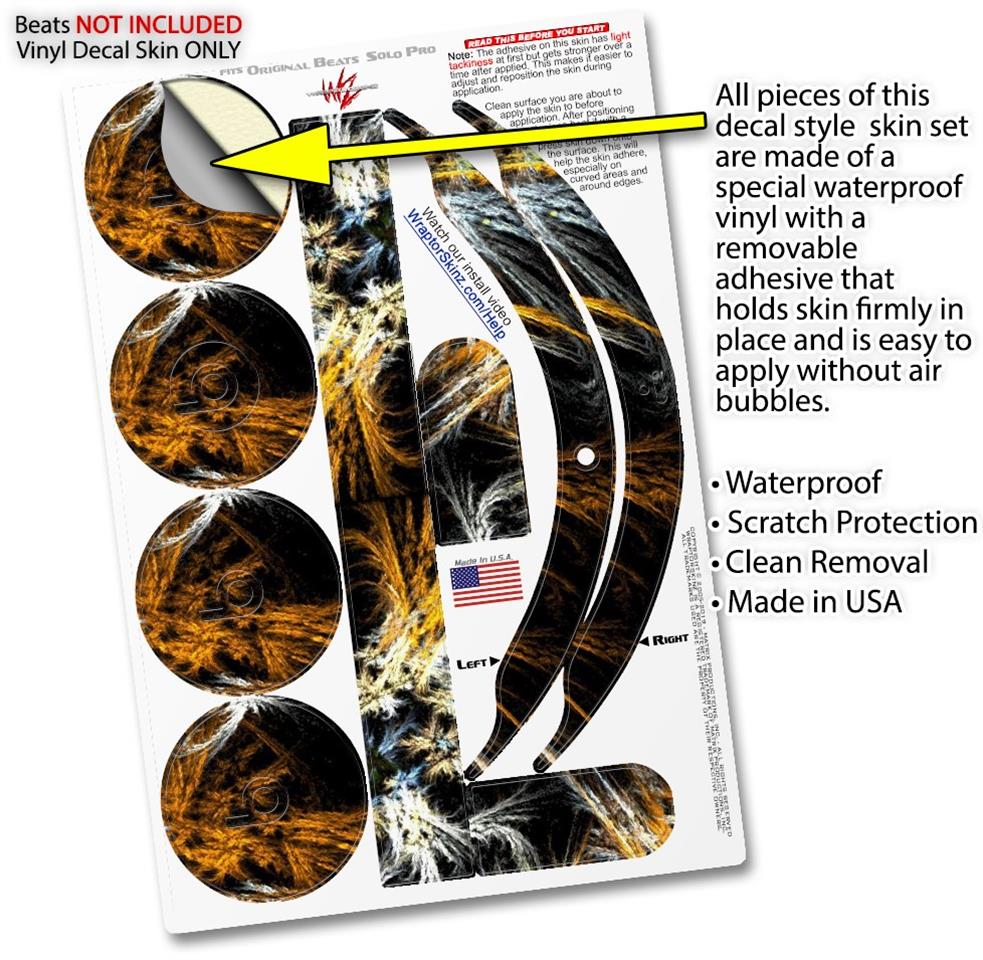 This product is in no way affiliated with or endorsed by Apple or Beats brand products. WraptorSkinz® skin wraps work with the Original Beats Solo Pro version 1 headphones. Printed using superb photo quality designs and vibrant colors printed with special fade resistant inks that last even in direct sun for years. WraptorSkinz are a composite of two layers of commercial grade materials. The bottom layer is a soft, flexible vinyl with a special removable adhesive that is easily positioned, applied without air bubbles. Next, we print the bottom layer with UV protected, fade resistant inks that deliver superb photo quality designs in vibrant colors. Finally, we bond a professional grade laminate over the entire skin adding a glossy protective finish.