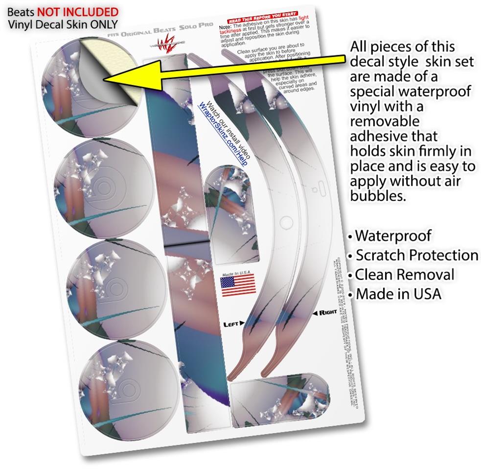 This product is in no way affiliated with or endorsed by Apple or Beats brand products. WraptorSkinz® skin wraps work with the Original Beats Solo Pro version 1 headphones. Printed using superb photo quality designs and vibrant colors printed with special fade resistant inks that last even in direct sun for years. WraptorSkinz are a composite of two layers of commercial grade materials. The bottom layer is a soft, flexible vinyl with a special removable adhesive that is easily positioned, applied without air bubbles. Next, we print the bottom layer with UV protected, fade resistant inks that deliver superb photo quality designs in vibrant colors. Finally, we bond a professional grade laminate over the entire skin adding a glossy protective finish.
