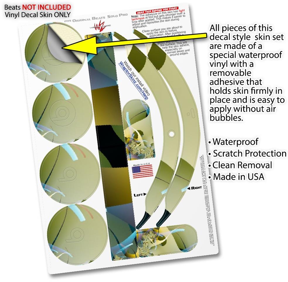 This product is in no way affiliated with or endorsed by Apple or Beats brand products. WraptorSkinz® skin wraps work with the Original Beats Solo Pro version 1 headphones. Printed using superb photo quality designs and vibrant colors printed with special fade resistant inks that last even in direct sun for years. WraptorSkinz are a composite of two layers of commercial grade materials. The bottom layer is a soft, flexible vinyl with a special removable adhesive that is easily positioned, applied without air bubbles. Next, we print the bottom layer with UV protected, fade resistant inks that deliver superb photo quality designs in vibrant colors. Finally, we bond a professional grade laminate over the entire skin adding a glossy protective finish.