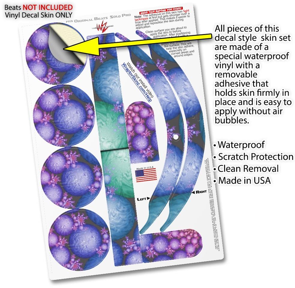 This product is in no way affiliated with or endorsed by Apple or Beats brand products. WraptorSkinz® skin wraps work with the Original Beats Solo Pro version 1 headphones. Printed using superb photo quality designs and vibrant colors printed with special fade resistant inks that last even in direct sun for years. WraptorSkinz are a composite of two layers of commercial grade materials. The bottom layer is a soft, flexible vinyl with a special removable adhesive that is easily positioned, applied without air bubbles. Next, we print the bottom layer with UV protected, fade resistant inks that deliver superb photo quality designs in vibrant colors. Finally, we bond a professional grade laminate over the entire skin adding a glossy protective finish.
