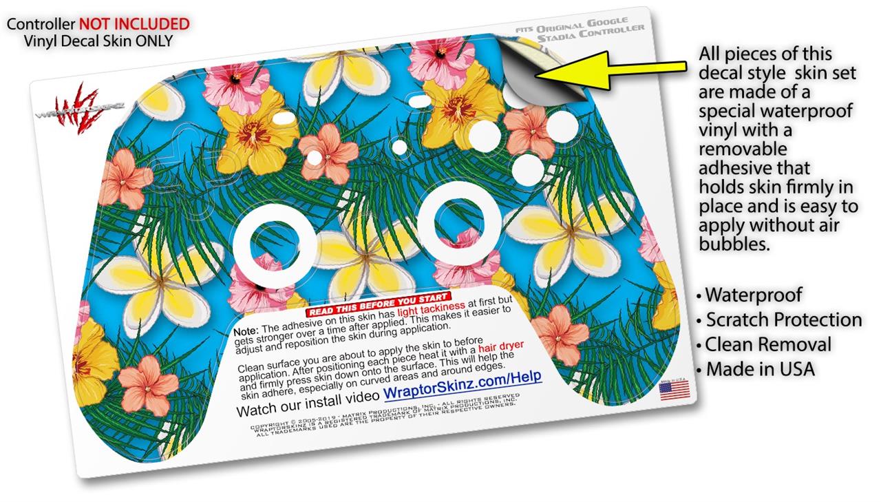 This product is in no way affiliated with or endorsed by Google. WraptorSkinz® skin wraps work with the Original Google Stadia version 1 Controller. Printed using superb photo quality designs and vibrant colors printed with special fade resistant inks that last even in direct sun for years. WraptorSkinz are a composite of two layers of commercial grade materials. The bottom layer is a soft, flexible vinyl with a special removable adhesive that is easily positioned, applied without air bubbles. Next, we print the bottom layer with UV protected, fade resistant inks that deliver superb photo quality designs in vibrant colors. Finally, we bond a professional grade laminate over the entire skin adding a glossy protective finish.