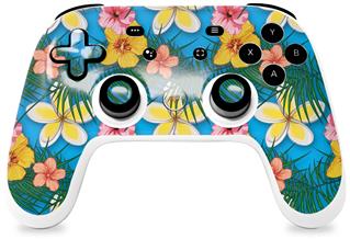 Skin Decal Wrap works with Original Google Stadia Controller Beach Flowers 02 Blue Medium Skin Only CONTROLLER NOT INCLUDED