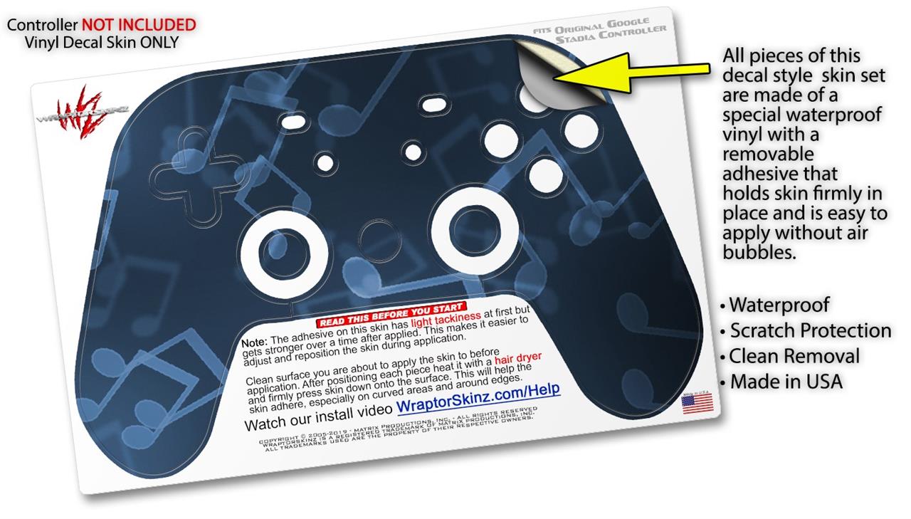 This product is in no way affiliated with or endorsed by Google. WraptorSkinz® skin wraps work with the Original Google Stadia version 1 Controller. Printed using superb photo quality designs and vibrant colors printed with special fade resistant inks that last even in direct sun for years. WraptorSkinz are a composite of two layers of commercial grade materials. The bottom layer is a soft, flexible vinyl with a special removable adhesive that is easily positioned, applied without air bubbles. Next, we print the bottom layer with UV protected, fade resistant inks that deliver superb photo quality designs in vibrant colors. Finally, we bond a professional grade laminate over the entire skin adding a glossy protective finish.