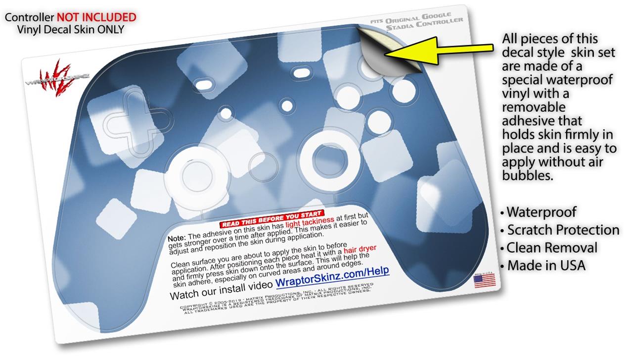 Skin Decal Wrap works with Original Google Stadia Controller Bokeh Squared Blue Skin Only CONTROLLER NOT INCLUDED