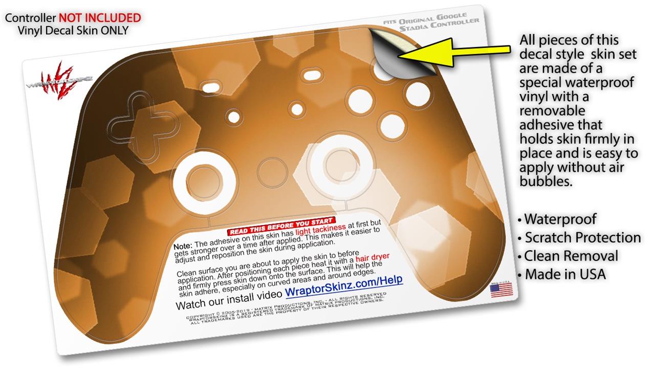 Skin Decal Wrap works with Original Google Stadia Controller Bokeh Hex Orange Skin Only CONTROLLER NOT INCLUDED