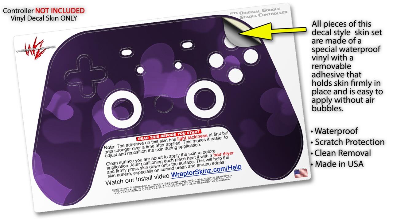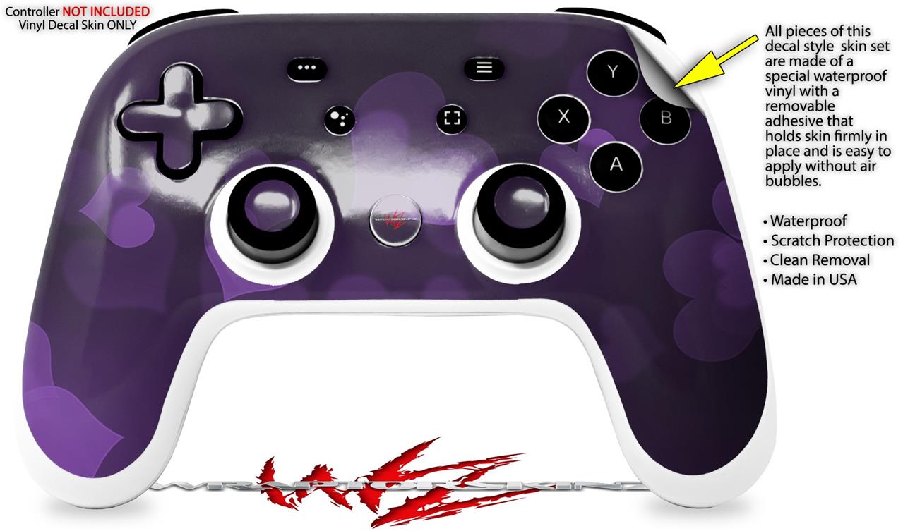 Skin Decal Wrap works with Original Google Stadia Controller Bokeh Hearts Purple Skin Only CONTROLLER NOT INCLUDED